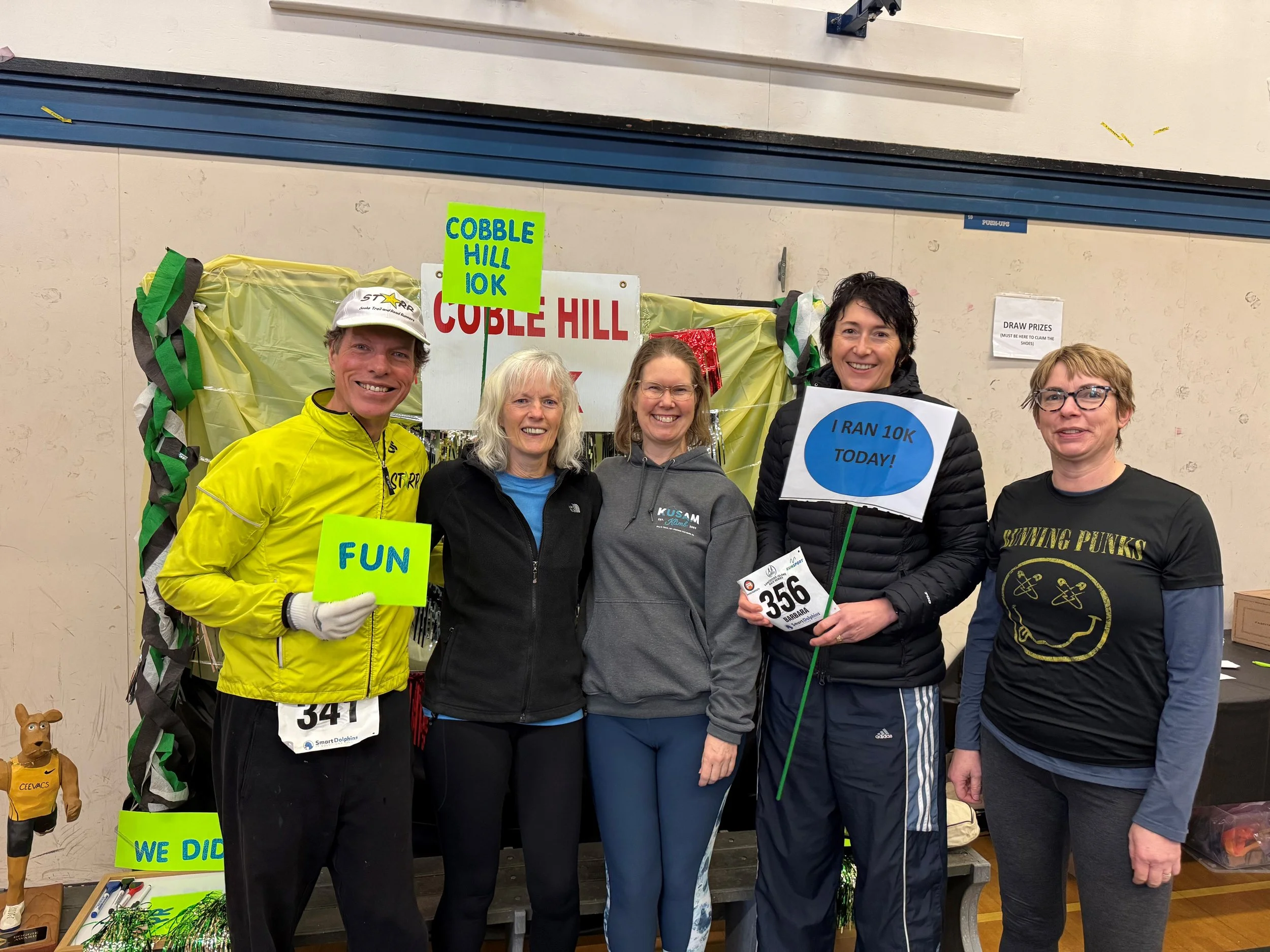 The event today went almost without mishap. One runner who I won’t mention by name, passed her exchange point and kept running. When the other runner reached the 42km marker for the exchange, there was no sign of her exchange partner. Barb and Andy accompanied the runner to the next exchange (thanks, Mel for covering more than your part!) and we believe things worked out. No one was left without a turn to carry the torch. Let’s just say the incident made for a comical story as the missing runner’s husband just smiled and shook his head when he heard what she’d done!