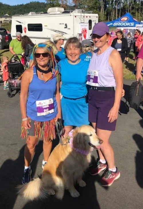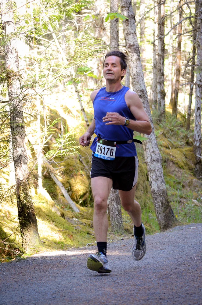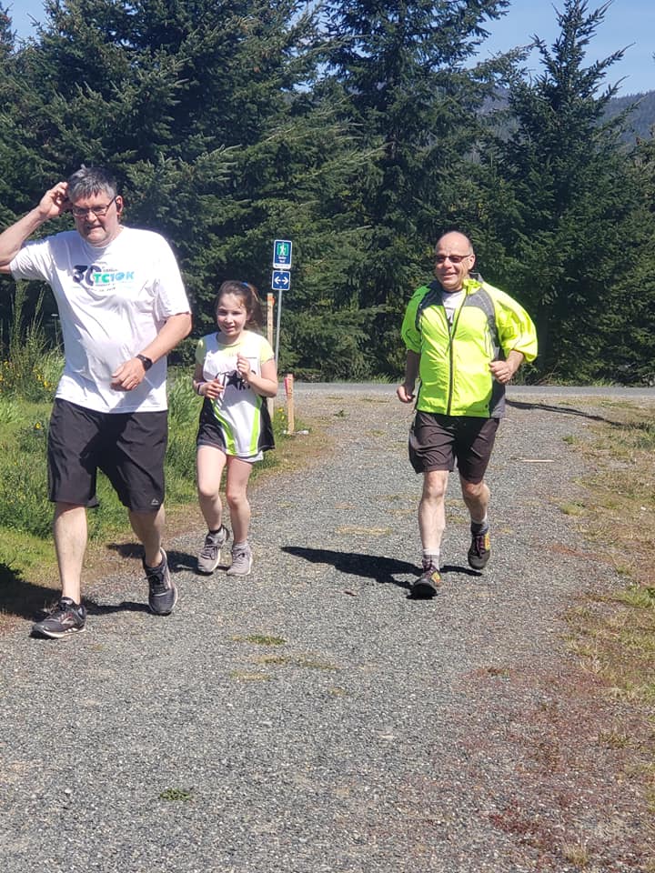 Yes, the club has kept going through thick and thin, including through Covid. Membership numbers have gone up and down over time, and it remains a typically small club given the distance from Victoria and the existence of other well established running groups on the the island. People tend to come and go from Sooke, and visitors also sometimes attend, but there has always been a small ‘hard core’ of regular attendees on a Thursday eve and Sat morning. Some of these have included Steve Kent, Hector and Louise Meir, Chuck and Lorna Robertson, Jodi Coderre, Melinda Brake, Jim Gable, Steve Zylak, Heather Devereux, Lisa Greig, Mark Ziegler, Claude LaForce, Michel and Susanne, Lawrence and Kim Fairfield, Tom Burgess, Danny Eddy, Robin Wark. Committed to running in all weathers, and sporting an array of bright lights so as to be seen on the dark winter evenings, the group can be found limbering up in front of Seaparc centre on a Sat morning and usually afterwards for a sociable coffee at Little Vienna.